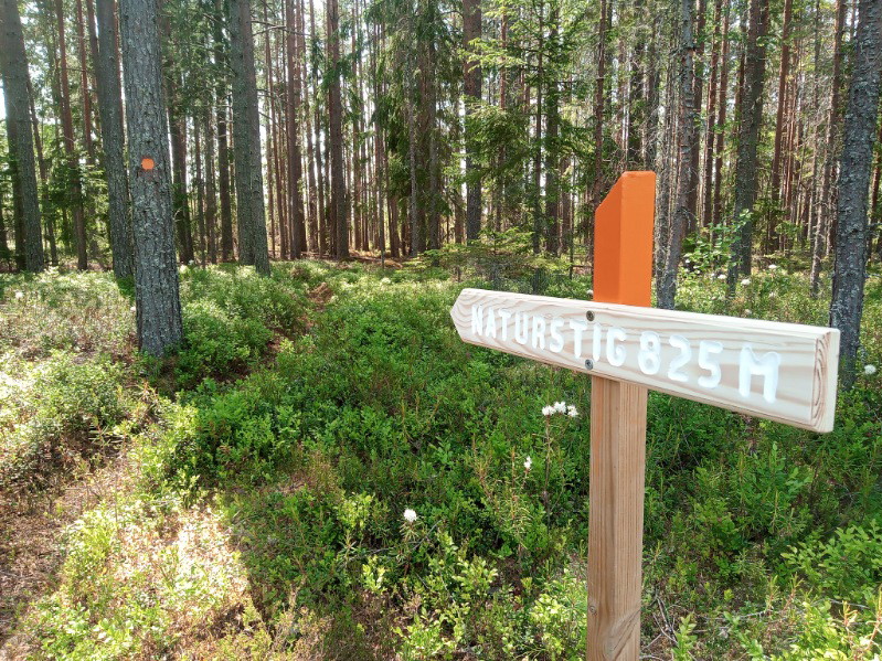 Neuer Naturpfad durch ein zukünftiges Naturschutzgebiet. Das Gebiet besteht hauptsächlich aus quatramtalem Wald und Ameisen. Sie wandern entlang der Tierwege und frischen Trikots, und im Laufe der Zeit ist der Weg wahrscheinlich mehr betramplt. Auf dem Weg passieren Sie alte Torfeinnahmen, die wie Depressionen in den Ameisen aussehen. Weiter in die Gegend gibt es viele alte und verkrüppelte Kiefern.