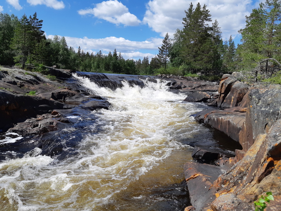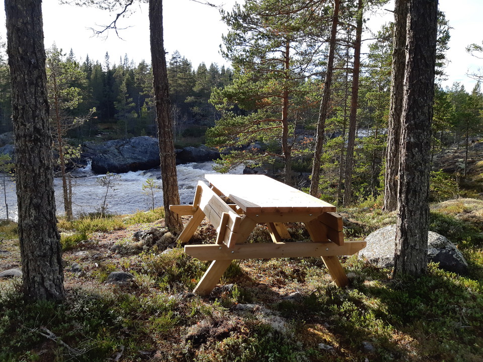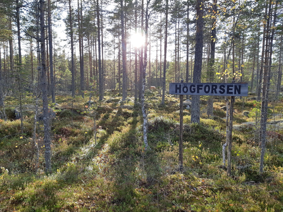 Vom Rullbo-Grästjärnweg aus befindet sich ein Schild, das Sie auf der östlichen Seite von Högforsen führt. Es gibt eine ruhende Mafia, wo man sich ausruhen kann.