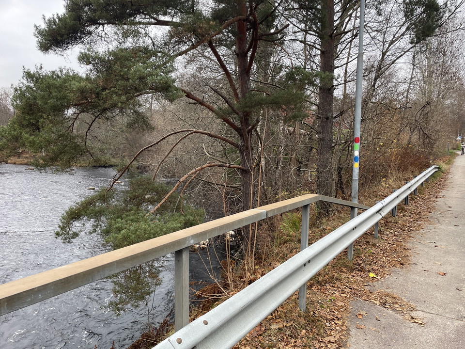 Schöne Spur, die teilweise nach Krokån folgt. Auf der Heimstraße werden Überreste des alten Trocken- und Rückbaus weitergegeben. Das Scoutstugan befindet sich auf der alten Kirchenstraße von Brånalt.