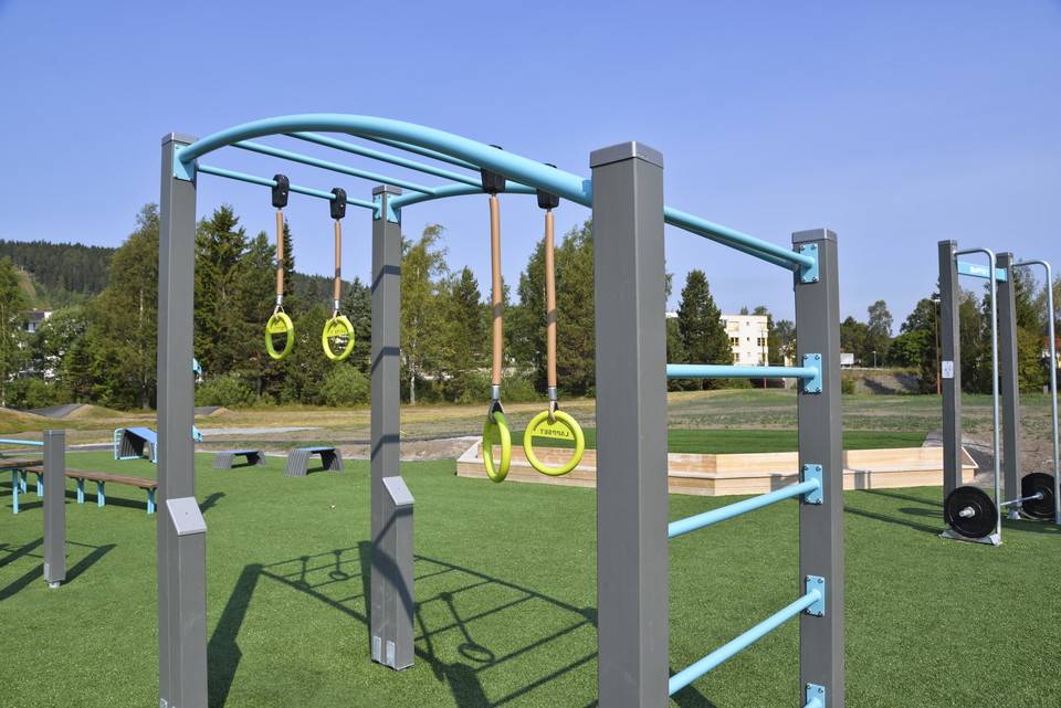 Ein Fitnessstudio im Freien im Jahr 2018 gebaut. Es gibt etwas für jeden und mehrere der Werkzeuge sind zugänglich.