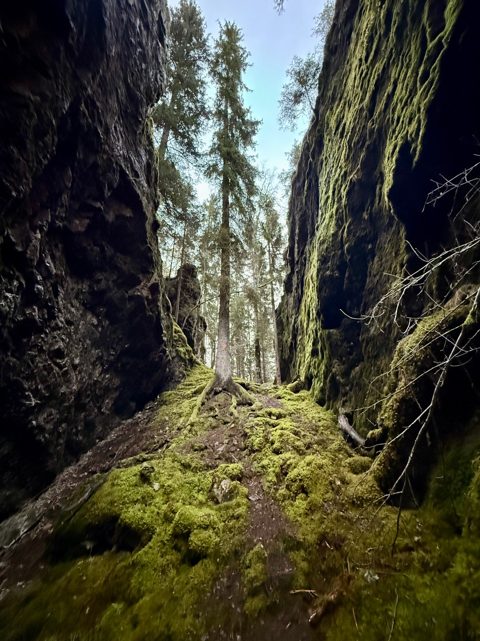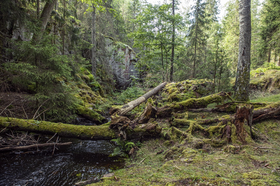 Tjusthult, wo Sie zwischen stattlichen alten Kiefern auf flechtenbedeckten Felsen wandern oder sich ins Moos begeben und die insektenfressende Pflanze Sonnentau kennenlernen können. Der Urwald und die große Menge an Totholz ermöglichen es Arten, die alten Wald benötigen, hier zu leben.