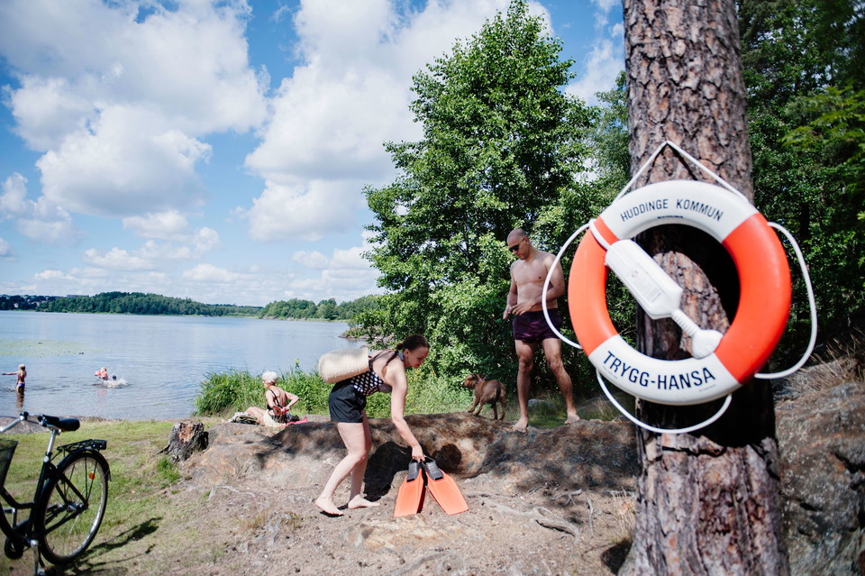 The bath is located north of Trångsund, just west of a small headland in Drevviken. The bath is close to the border with Stockholm municipality and is within walking and cycling distance of Trångsund, Skogås and Farsta. There is no public transport directly adjacent to the bath, but there is a bus stop and commuter train station about a kilometer away. There is also a metro station within walking distance of the bathing area. The possibility of getting here and parking by car is limited.