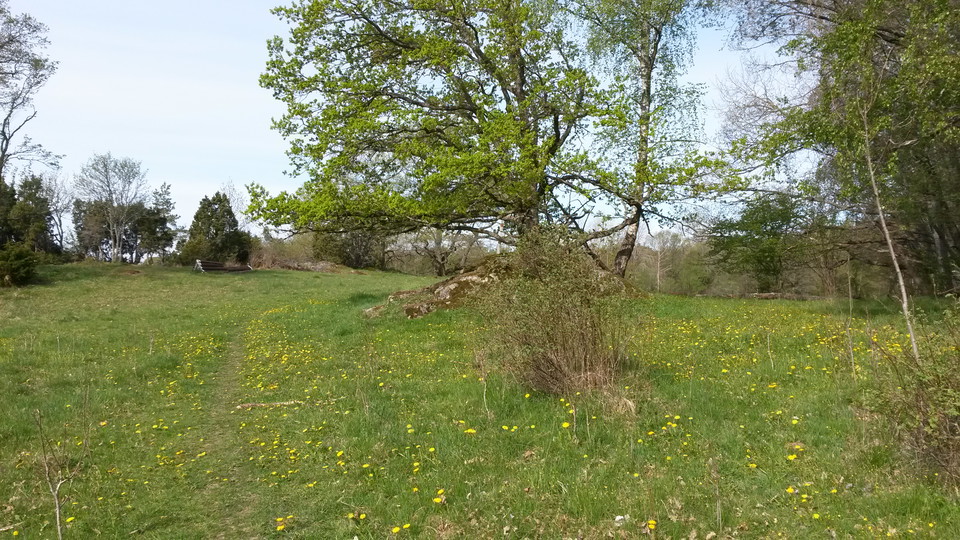 Trevlig vandring i kulturmark bestående av fält och hagar. En topptur på berget vid fornborgen för den som orkar gå i obanad mark leder upp till fin utsikt i sydväst.