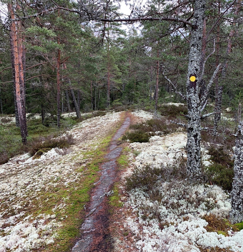 Dieser Wanderweg verläuft zwischen der Haltestelle am See Långviksträsket und der nördlichen Grenze des Naturschutzgebietes. Dort, direkt außerhalb des Reservats, verbindet sich der Weg zu einer boomenden Schotterstraße.