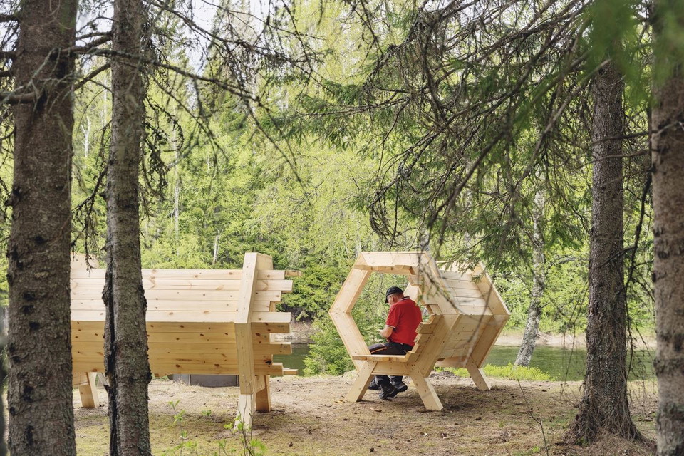 Speziell gestaltete Konstruktionen entlang Rickleån in Åknät, Räveln und Johanneslund. Gehen Sie entlang der Navy Road und Fishingstigen und machen Sie eine Pause an diesen schönen Orten.