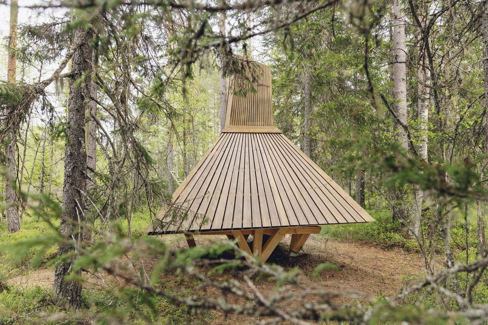 Im Winter und Frühjahr 2023 wurden drei einzigartige Wetterschutzmittel entlang Rickleån entworfen und gebaut. Das Projekt war eine Zusammenarbeit zwischen international renommierten Ark. Nat, Umeå Universität für Architektur und Robertsfors Gemeinde.