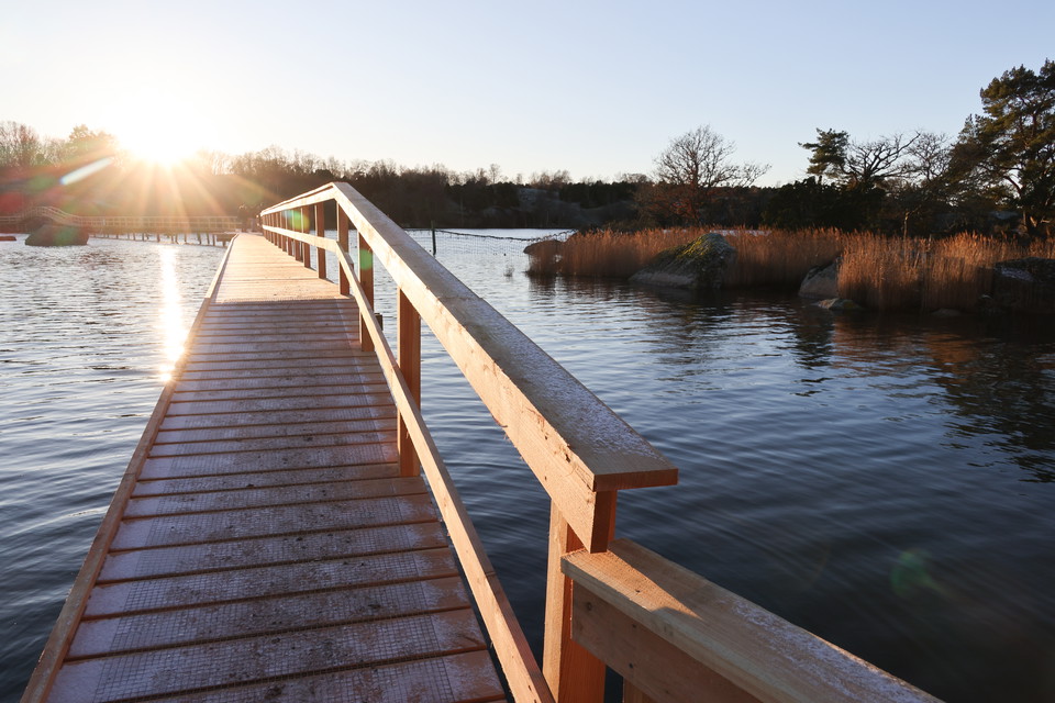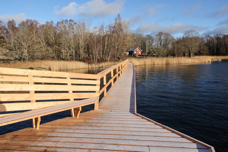 Many have eagerly awaited the completion of the bridges around Eriksberg. Now they are in place, with 300 meters of bridges connecting Allböleleden with Kohageleden. A suspension bridge, a wooden bridge, and a beam walkway have been built in the Eriksberg Nature Reserve, enabling a 13 km long hike between Björnahemmet on the western side of Eriksberg and the safari park entrance (Outdoor Eriksberg). Never before has it been so easy to hike close to the sea and venture far into the archipelago without your own boat.