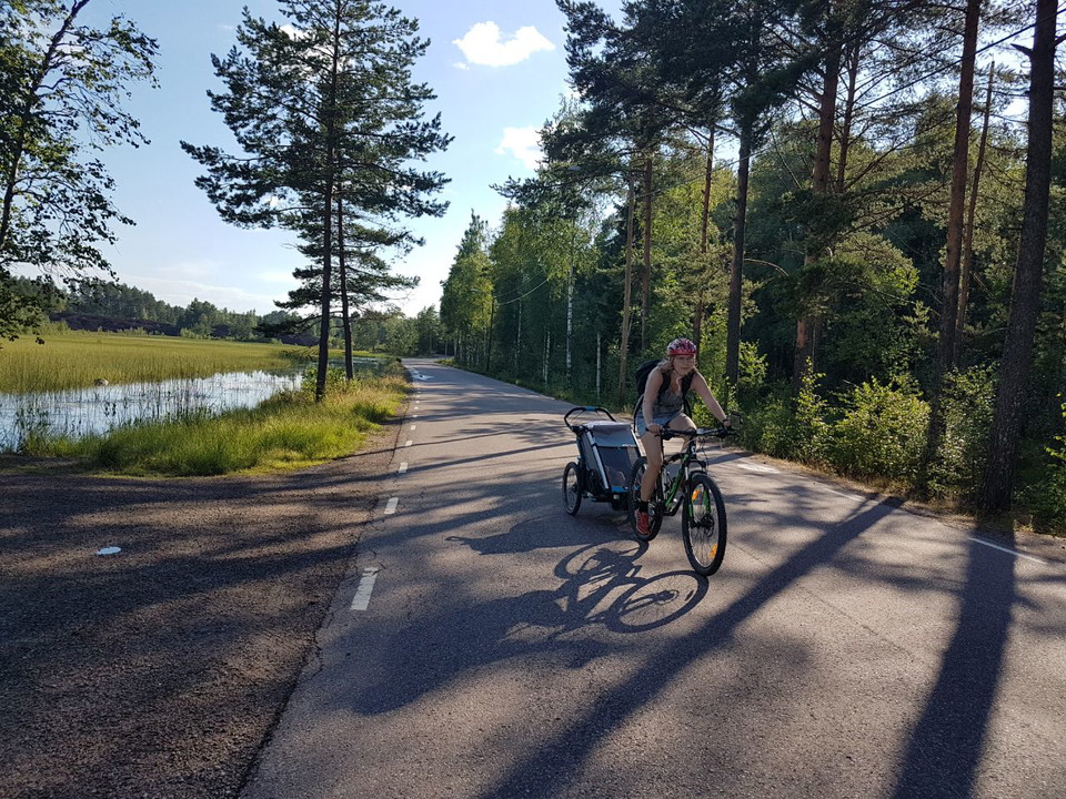 Start in central Falun and cycle up Gruvgatan past the skate park.