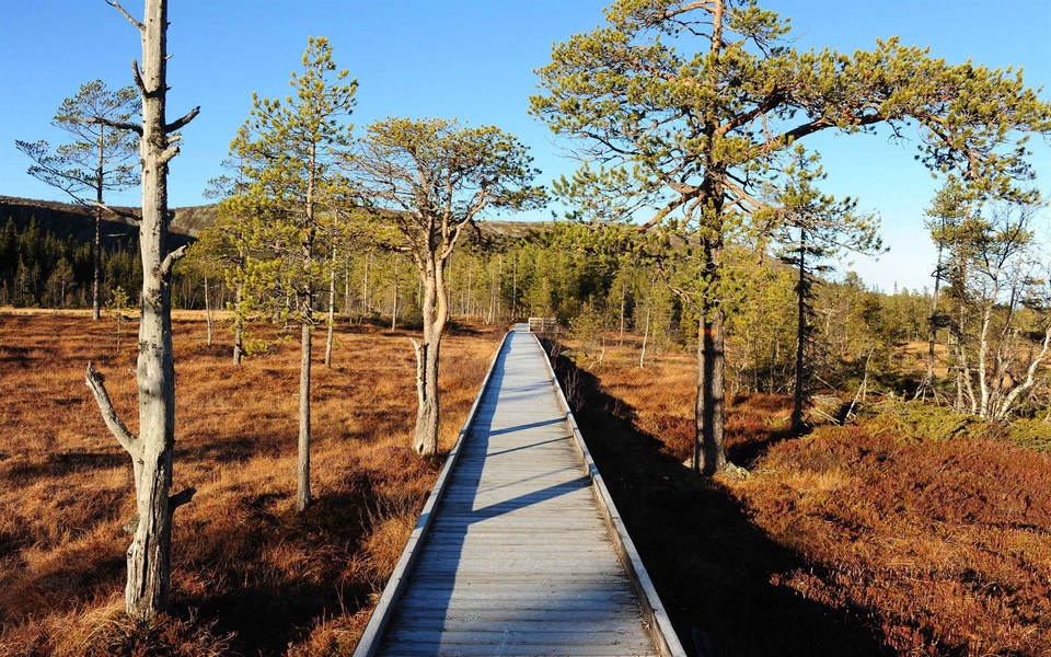 This summer trail takes you to Njupeskär waterfall. The sound of the water crushing is almost deafening and creates a heavy mist that many unusual mosses and lichens enjoy.