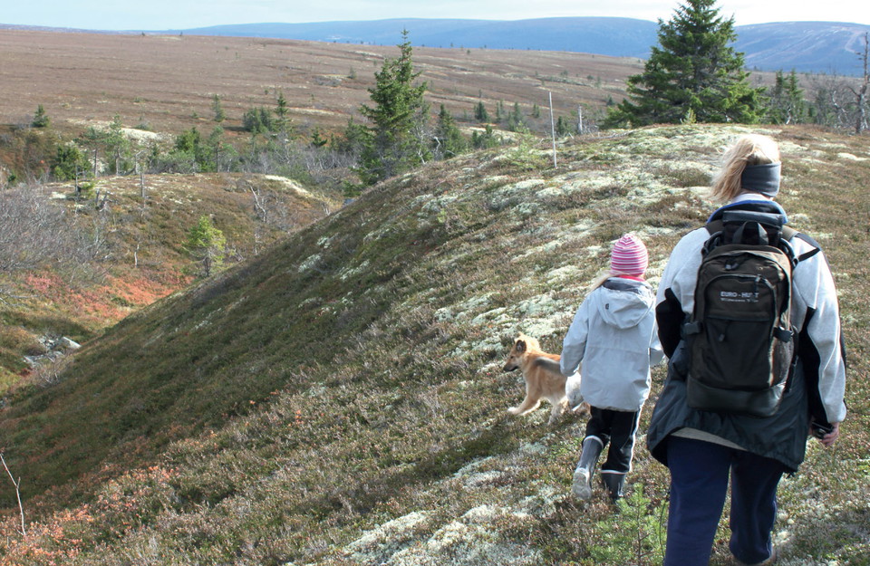 You can park your car by Myrflodammen, follow the red trailmarks to the left to Myrflodammen. Easy hiking trail through amazing scenery with rich bird life. After about 2,5 km you are coming to a rest area called ”Kläppenskjulet”, a nice place where you can take a short brake. The hiking continues on the trail, Sälenringen, the trail goes over Lägerdalsfjället (Lägerdalsmountain) with a wonderful view in all directions. After about 5 km, by the crossroad, take to the left towards Myrflodammen, here the trail goes quite steep downhill towards ”Kruggbäcken” (Kruggstream) where the trail follows the crystal clear stream down to the starting point at Myrflodammen.