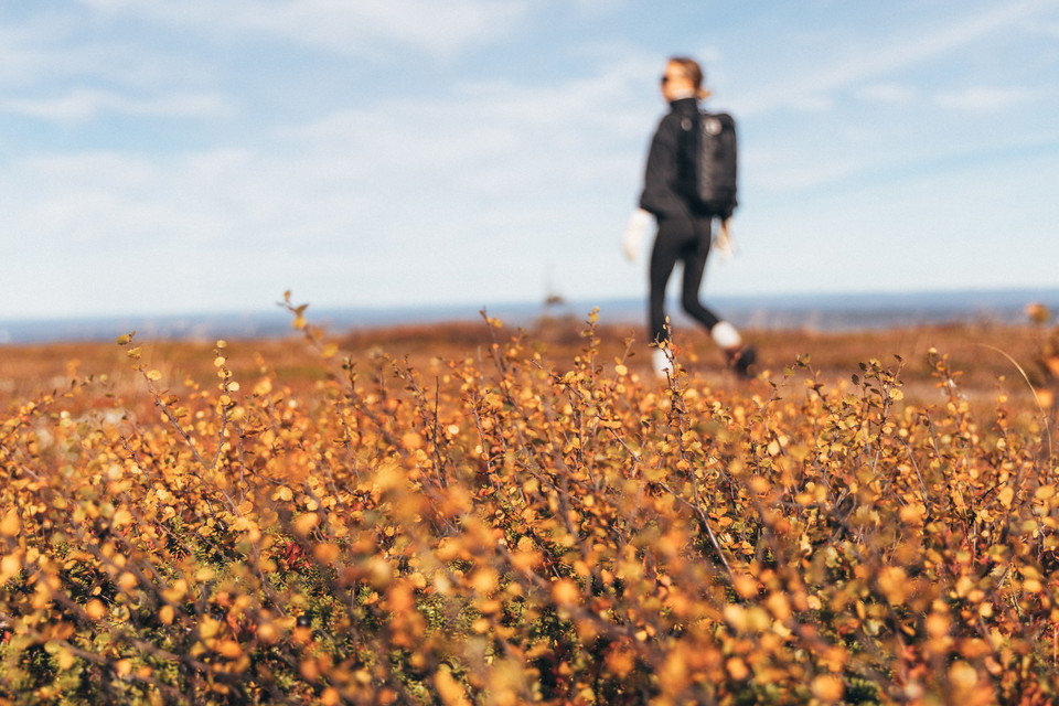 This hiking trail starts just opposite Högfjällshotellet and is marked with red crosses. Go through the portal, and you have started your hike on Södra Kungsleden. The hiking trail begins with a very gentle climb up the southern side of Östfjället. This part of the trail is asphalted and easy. It is excellent not only for guests with prams but also for our guests with wheelchairs who wish to get out into the highlands. The asphalted section is around 2.5 km long, and along this part, there are benches for those who want some rest or just want to enjoy the beautiful view. At the end of the asphalt, the surface is gravel, so it's still an easy hike up to the Östfjällsstugan.