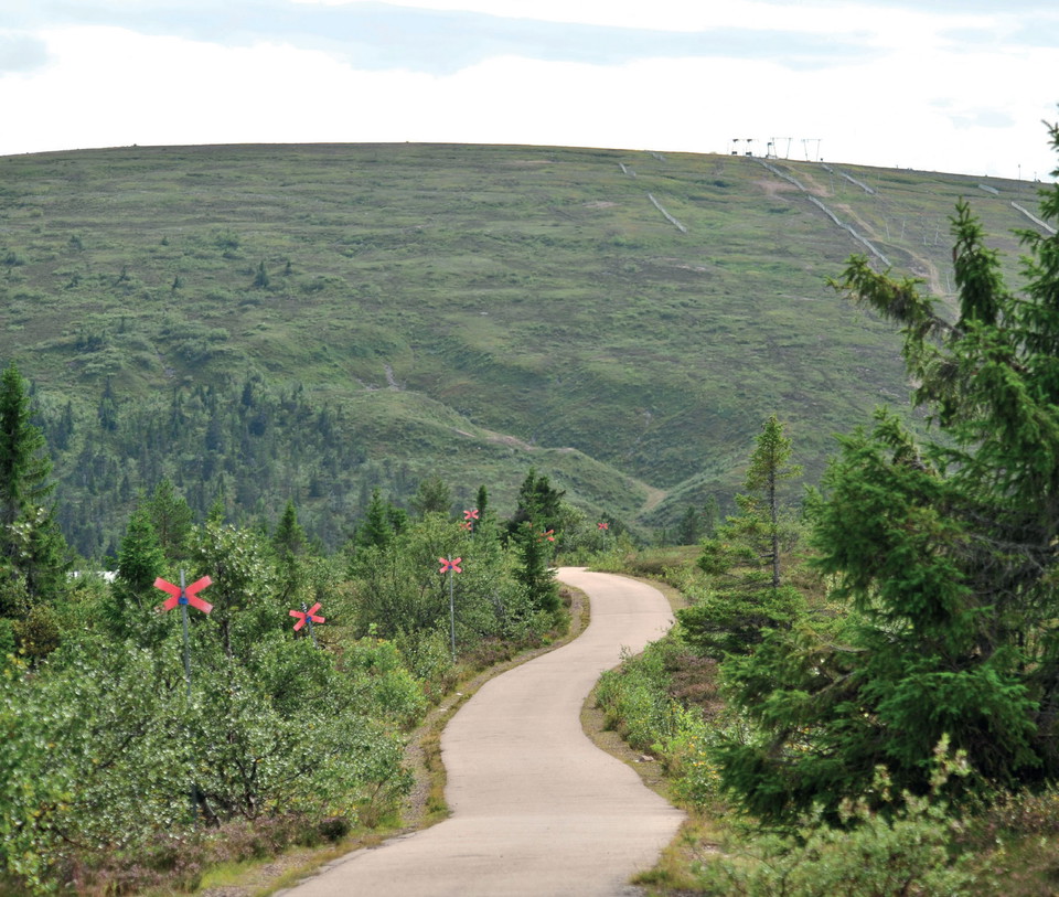 From here, the hiking trail continues westward, and you walk on footbridges. Where the trail splits after about 1 km, follow the south towards Gruven/Högfjället. Here, you also walk on footbridges. After about 3 km, you are down by road 66, where it will be a walk along the road for about 1 km before you reach the Högfjällshotellet and the starting point.
