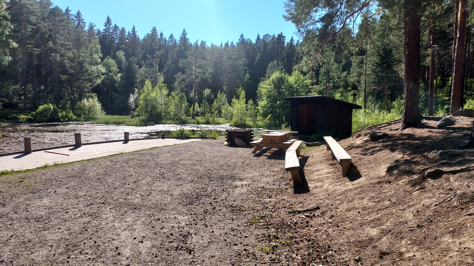 Nice rest area next to Badtjärn in Järvsö. There is a barbecue area, several bench tables and ordinary benches as well as a windbreak. The rest area is reached via an accessible wooden path about 200 meters long from a parking lot.