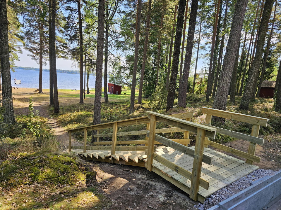 Welcome to Edsviken bathing area! Here you can enjoy sun and swimming in a family-friendly atmosphere. We wish you a wonderful stay! The bathing area consists of a sandy beach and there are changing rooms and a disabled toilet.