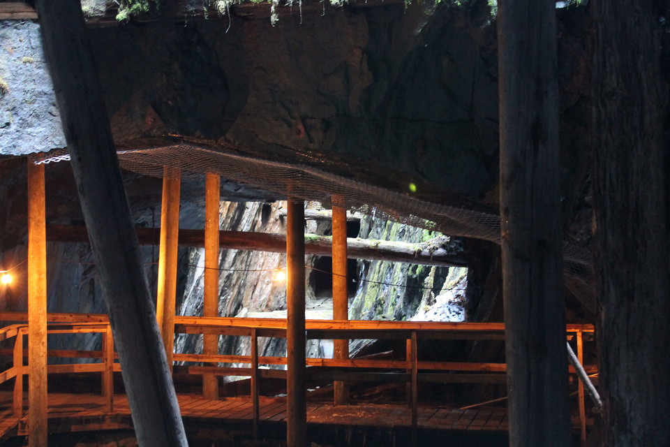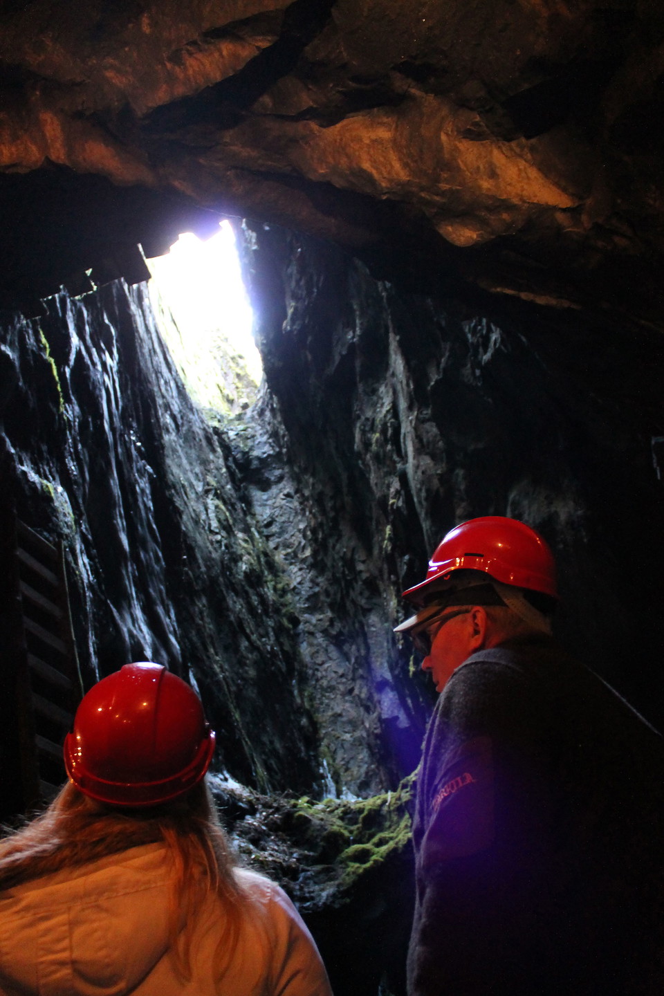 The gallery is the way into the underground, into the bowels of Storberget. Take a guided tour through the long mine passage, into the mining halls deep underground, where light streams down from the open-cast mines and the miner's wife watches in silence. Warm clothes are nice inside the mine.