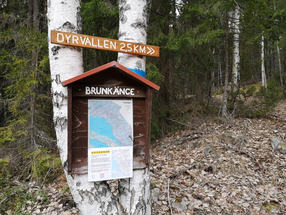 Relatively hilly up to Dyrvallen, which gives miles of views of the Dellen lakes. Fina Dyrvallen is quietly nestled in the forest, like a fairy tale! Easy hike down to Brunkänge, follow the blue marking, even there there is a chance of views of Norrdellen. Follow the gravel road west from Brunkänge and you will return to Ora. '