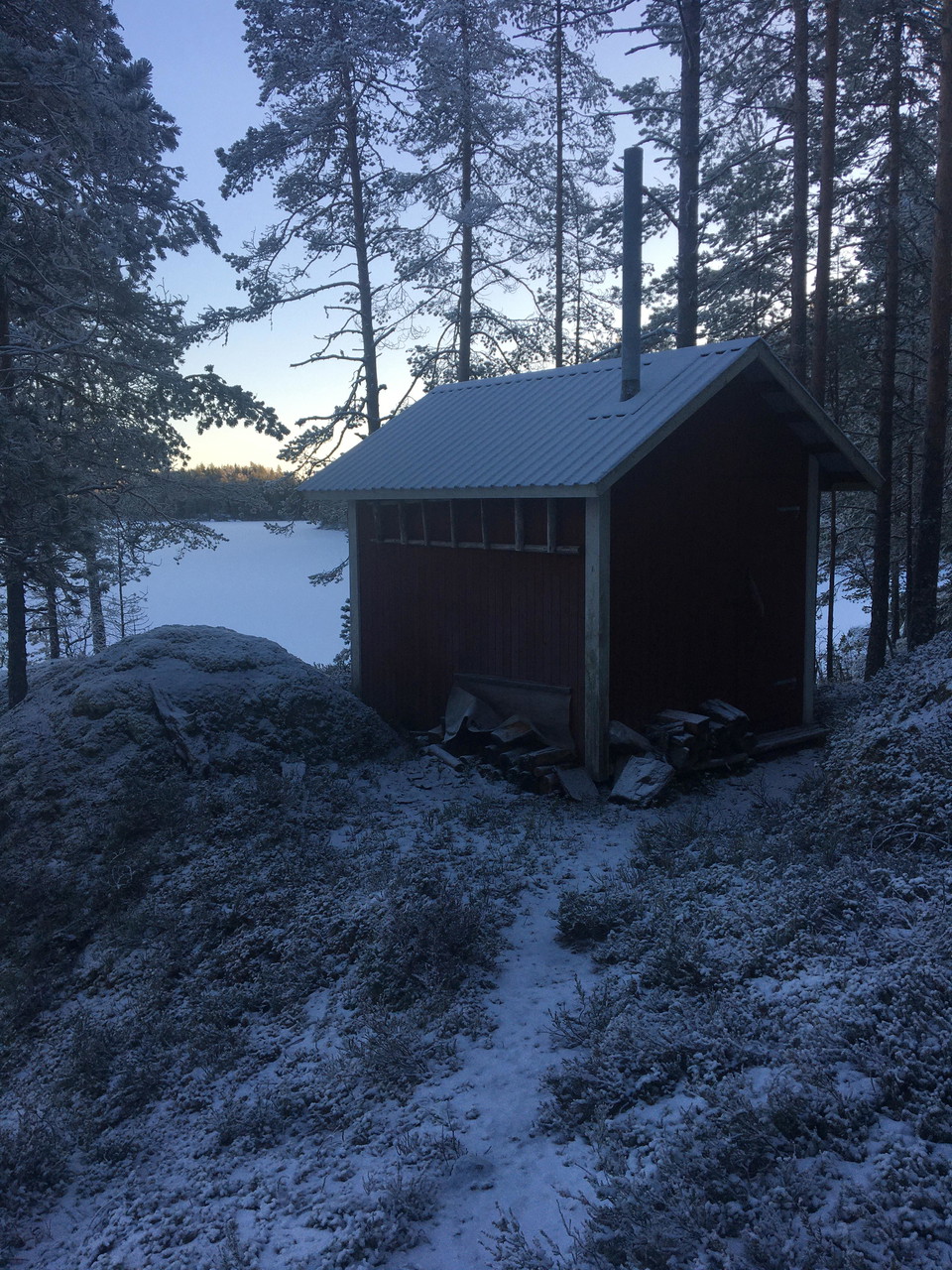 Stugan ligger ej vid markeringen på kartan utan vid slutet på vandringsleden. Bra raststuga med sittplatser och bord. Fint läge vid vattnet.