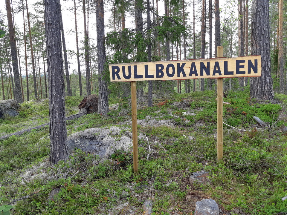 Rullbokanalen - beautiful place after the trail between Rullbo and Grästjärn. It is about 60 m to walk from the sign and down to the canal/Voxnan.