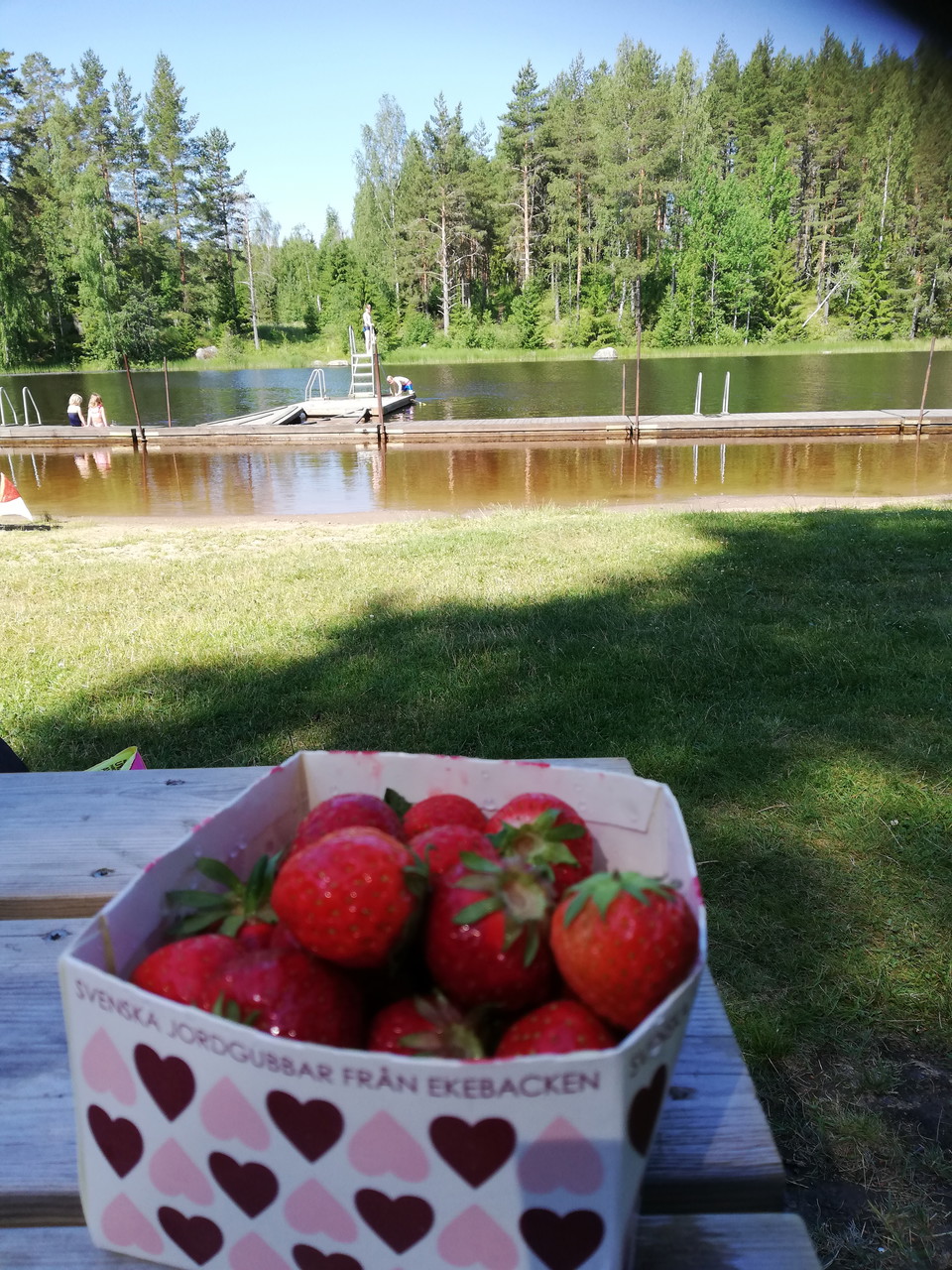 Uppskattat familjebad och här finns brygga och ett mindre hopptorn.