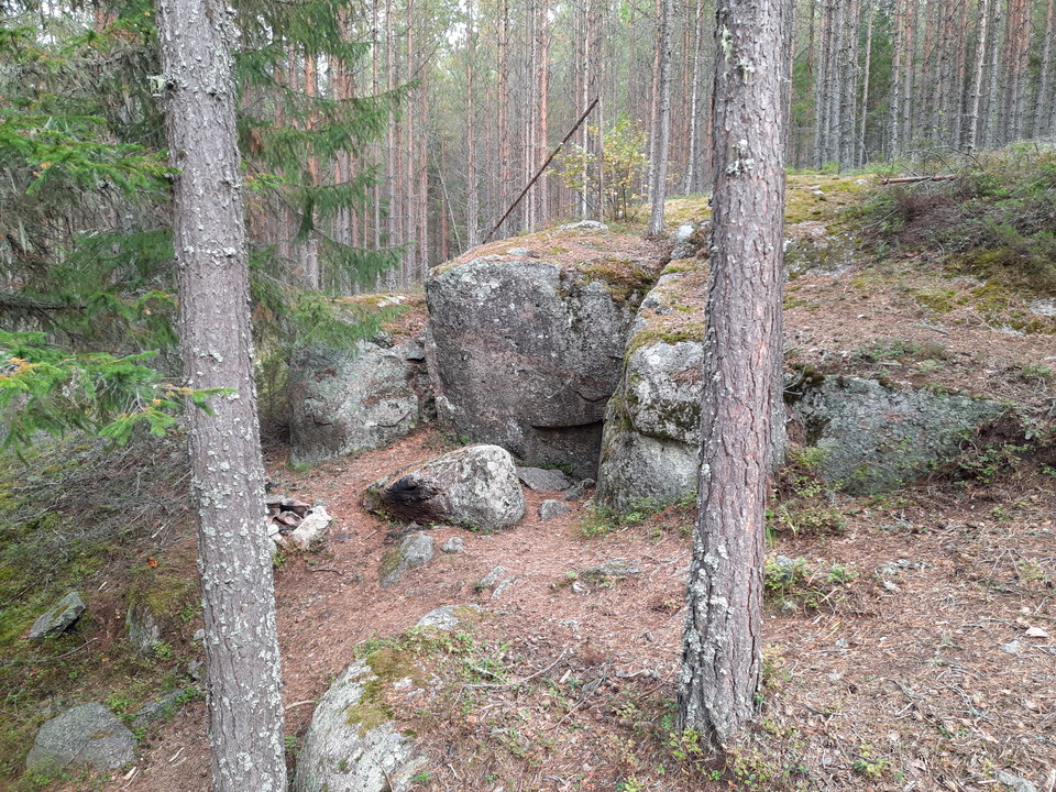 Just south of the cave at the same height, there are several smaller troll holes under rocks on the slope. There is also a cozy place on the slope with some views of Vängsbo.