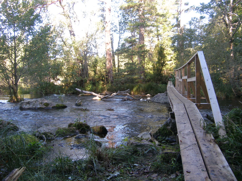 Stigar och spänger leder dig ut till Landkvarnsforsen. Ut till forsen är det ca 1,5 km enkel väg.