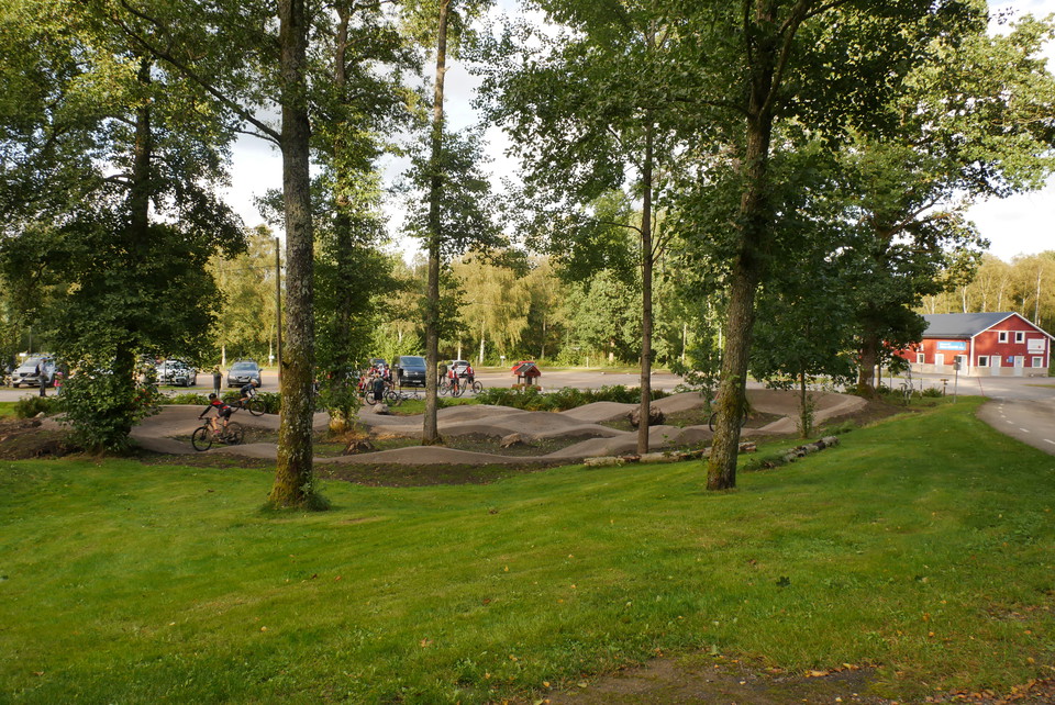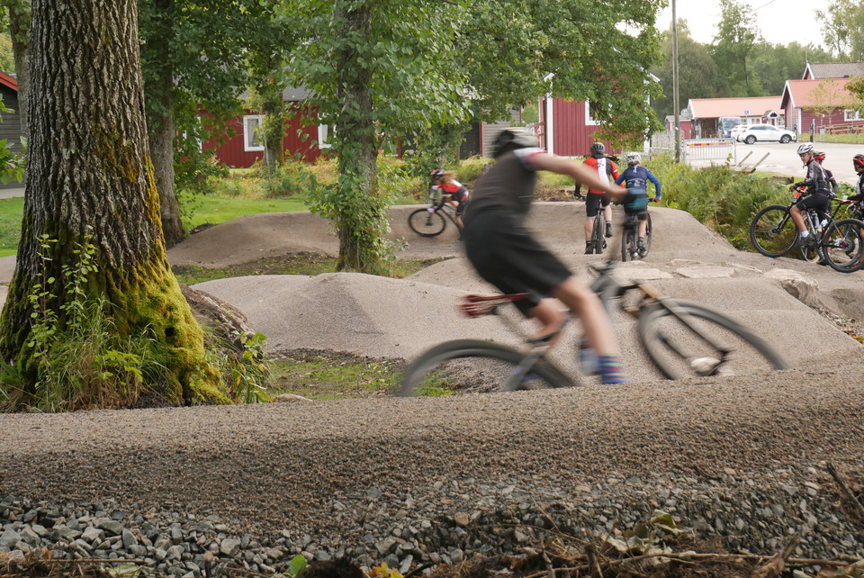 Åkulla pumptrack is an approximately 100-meter-long graveled track for cycling, made up of packed masses shaped into hills, curves and jumps.