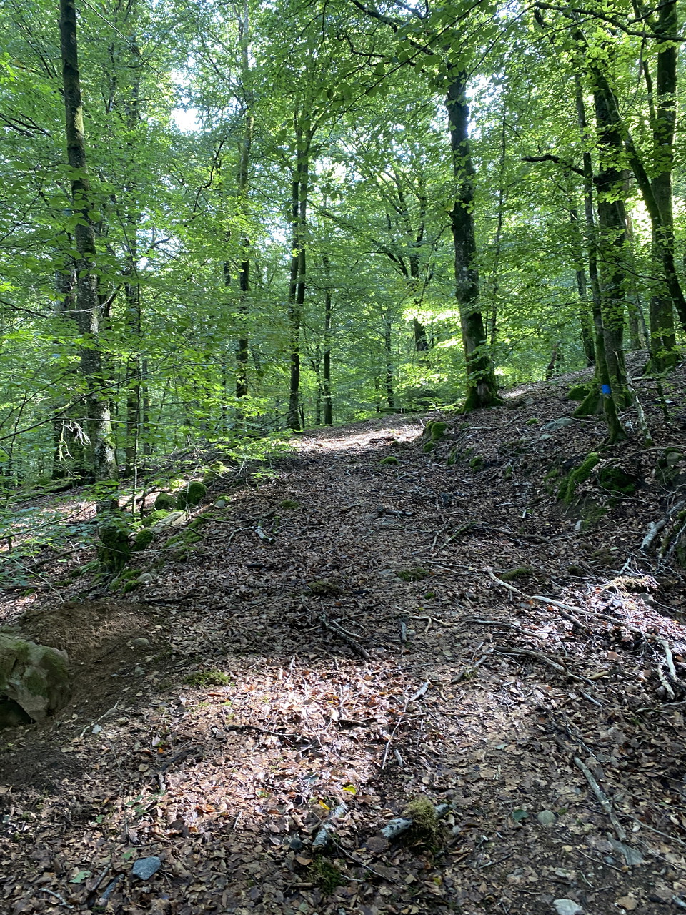 Promenadslinga genom byn men även på utmanande del i bokskogen men branta backar.