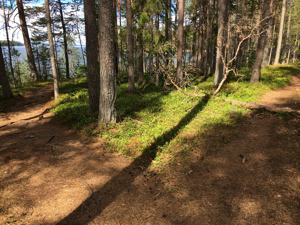 The southern end of the trail is accessible with a gravel path. The rest of the trail is a forest path where there are a lot of roots and in a few places a little wetter surface.