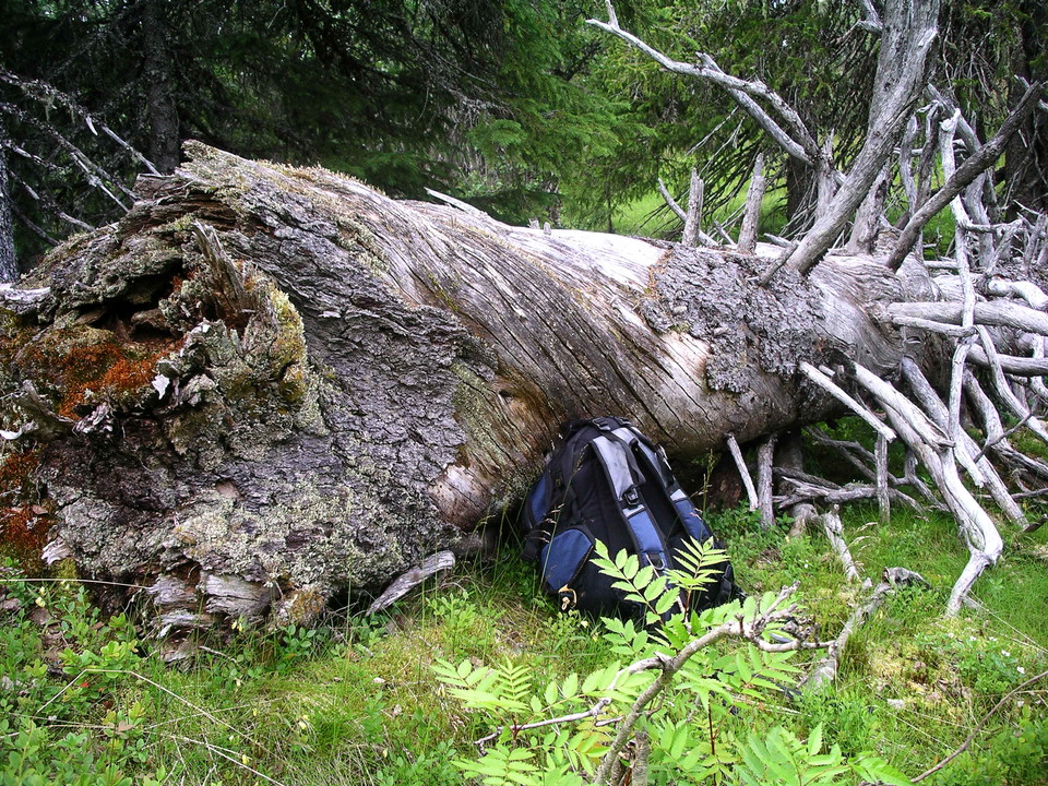 The northeast-facing slopes of Midsommarfjället are covered by a patchy spruce forest with hanging lichen. At the top of the slopes, gnarled mountain birch forest takes over. Old stumps can be found here and there, but over the past 100 years the degree of human impact has been modest. The forest has managed itself and is characterized by trees of all ages, gnarled deciduous trees, late-growing spruces and a large number of old trees and decaying wood.