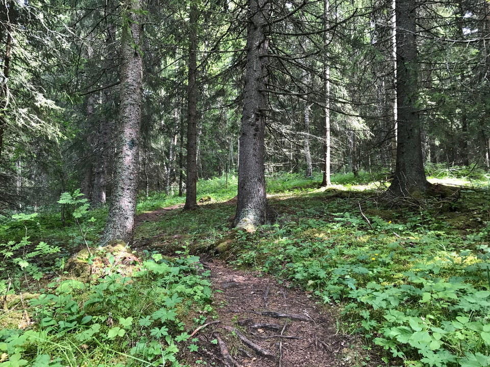 A path that goes around the top of Östberget on Frösön with nice views of Östersund. Occasionally you should watch out for roots on the path which is partly a bit wet and muddy. Signs along the way tell you about the nature around you.