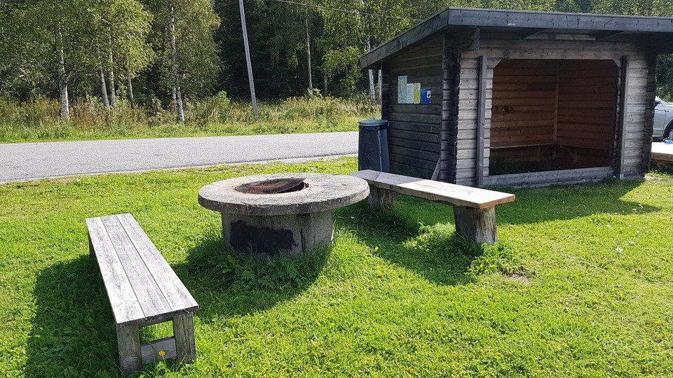 Rest area with outdoor toilet in Slåttviken