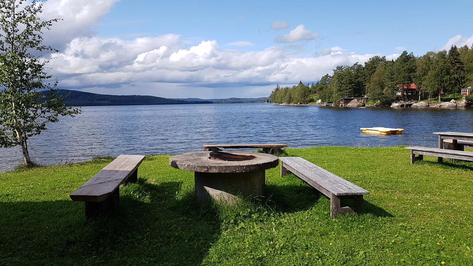 Rest area with shelter, firesite and outdoor toilet. It is also a good bathing spot.