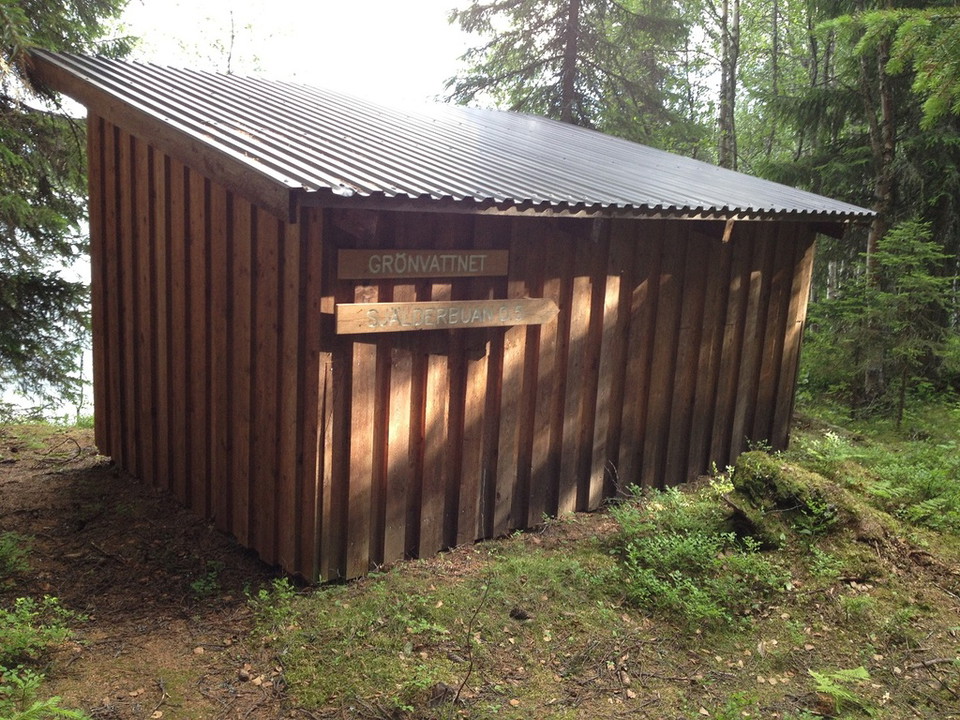 Följ stigen genom skogen så når du vindskyddet, som ligger fint intill Grönvattnet.