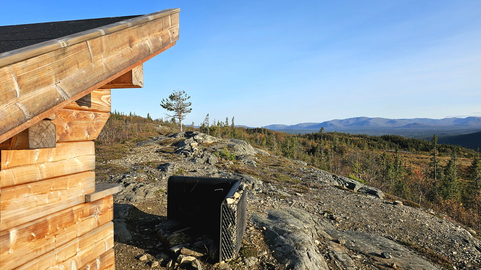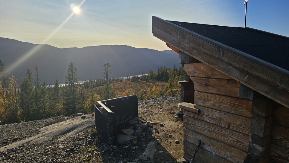 Vindskydd högt uppe på platån som ger dig en milsvid utsikt över fjäll och sjö.