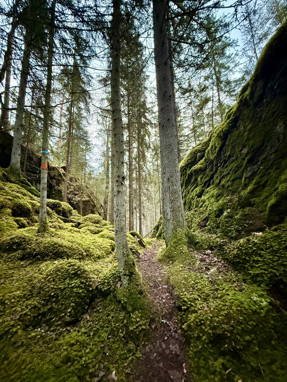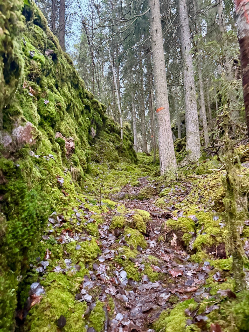 There is a blue-marked loop trail in the southern part of the nature reserve. Roughly halfway through, the trail branches off to a spectacular viewpoint where Djupaskuran plunges steeply downward. The trail is 2.5 kilometers long, including the detour, and runs through ravines and along the Lillån River, but also up on the ridges. The Smålandsleden trail runs partly parallel to the blue trail, but continues onward where the blue trail turns back.