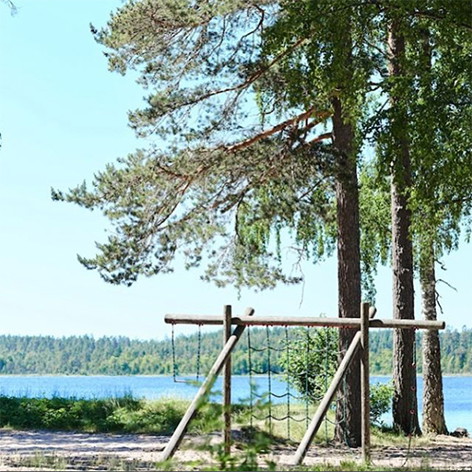 Lake Furusjön is a small lake that warms up quickly to bathing temperature. There is both a sandy beach and grassy areas to enjoy. The bathing area is child-friendly with a shallow bottom, jetties, a large playground and some trees next to the beach for shade. There are also cabins to change in, a restaurant, kiosk and WC.