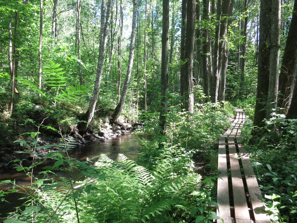 A beautiful hike along the Hökesån nature reserve. The path stretches from Spinnet all the way down to the outlet in Vättern. The path is challenging in some places.