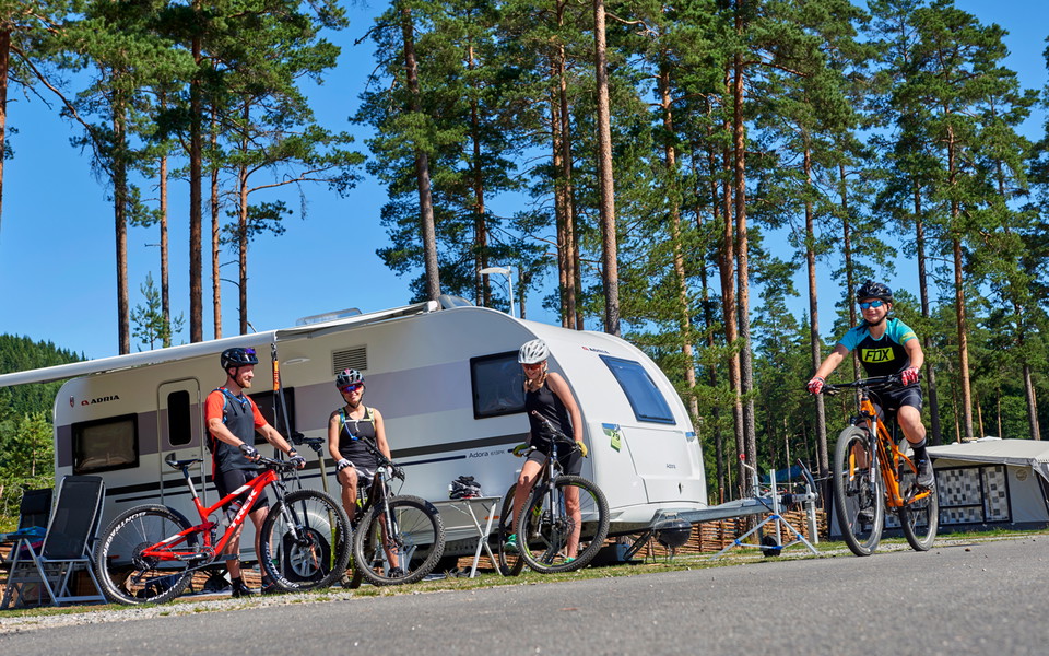 Den populära campingplatsen har 84 tomter med eluttag och kabel-TV, samt fritt Wifi i hela campingen och receptionen. Servicebyggnad med toaletter, duschar samt utrymme för disk, tvätt, matlagning samt torkskåp. I direkt anslutning till campingplatsen ligger sportcentret och huvudanläggningen med butik, konferenslokaler och en välrenommerad restaurang.