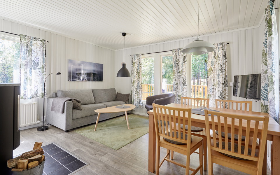 I den mysiga stugbyn kan du välja mellan stugor från 36 till 157 m²! Välj den bekvämlighetsnivå som passar er och er budget genom att boka stugan med självhushåll eller med full hotellservice. En god frukostbuffé i restaurangen kan ni alltid boka till. Alla stugor är fullt utrustade och nyrenoverade. Kaklade badrum, braskamin, TV. De flesta stugorna har även diskmaskin. Fritt WiFi finns i hela anläggningen.