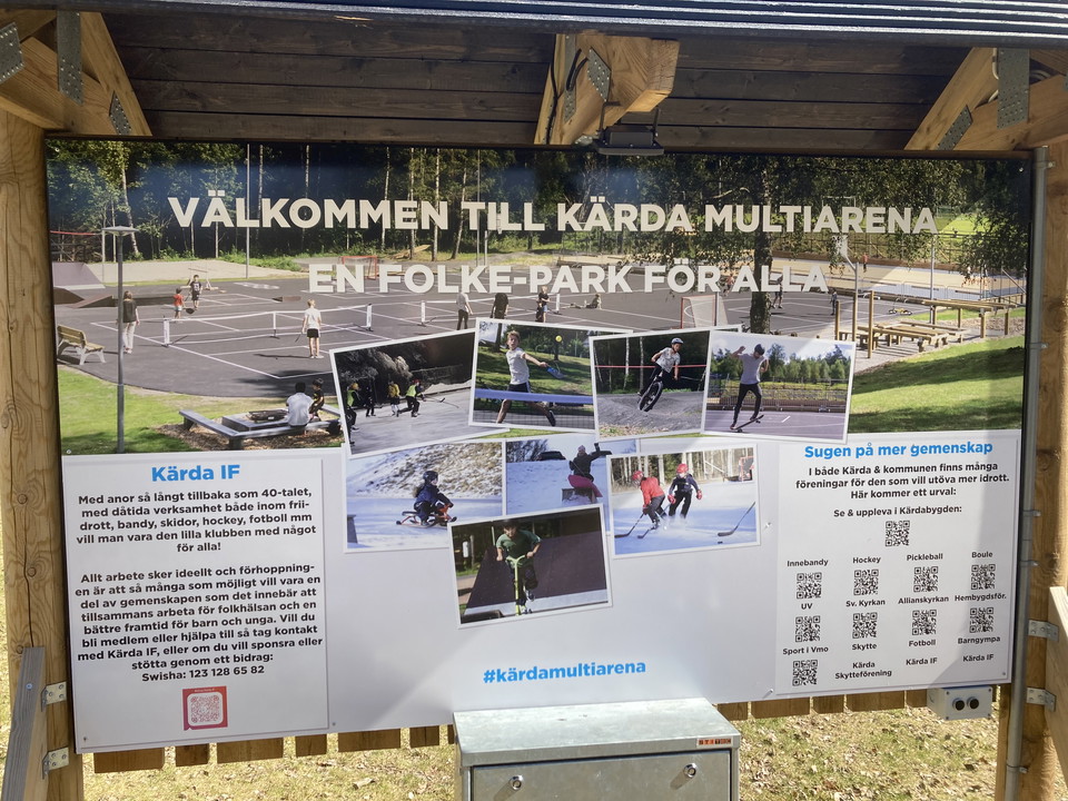 Kärda multiarena is an activity park that offers an opportunity to practise a number of different sports such as tennis, futsal, beach volleyball, disc golf, street hockey, basketball and skateboarding. There is also an outdoor gym with a variety of exercise equipment.