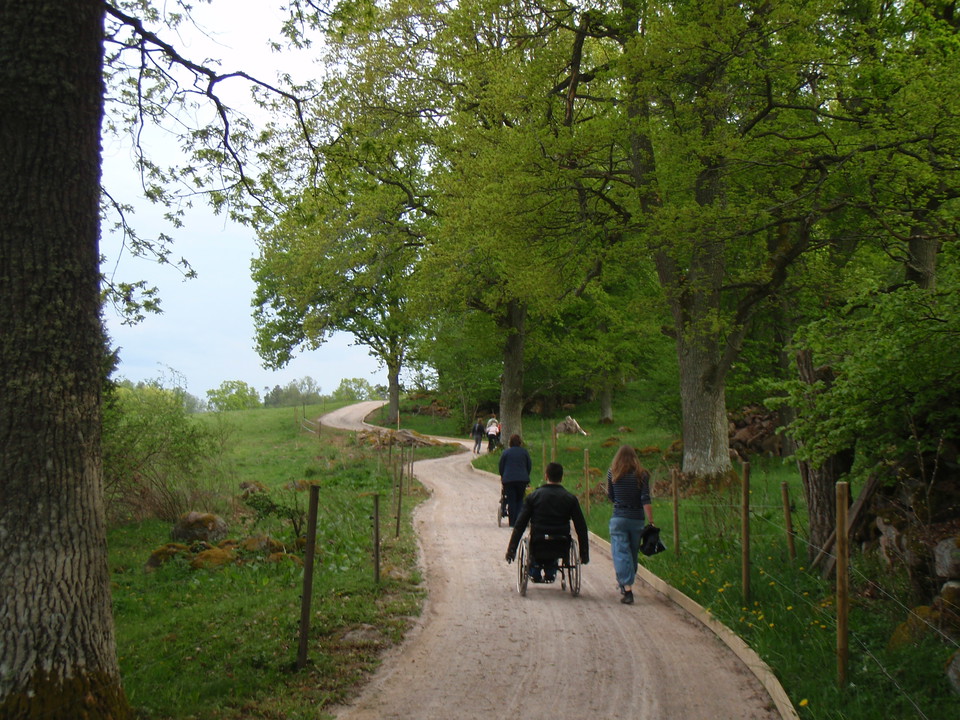On a newly constructed 1.7 kilometer hiking trail, you move easily forward on a fine powder of stone flour through a beautiful open landscape down to the blue waters of Lake Sommen. The trail is accessible to everyone down to a beautiful barbecue area towards Romanäs udde where you can take a break, you may meet hikers with strollers or visually impaired or wheelchair users here who may need some assistance to cope with the more challenging remaining stretch up steep slopes and through a cow pasture where it is important to watch out for the bull. It is not hard to understand that poets like Harriet Löwenhjelm were once able to thrive in a place like this despite suffering from an illness that was best alleviated by a stay in this beautiful environment. From the parking lot, the trail is 2.3 km long.