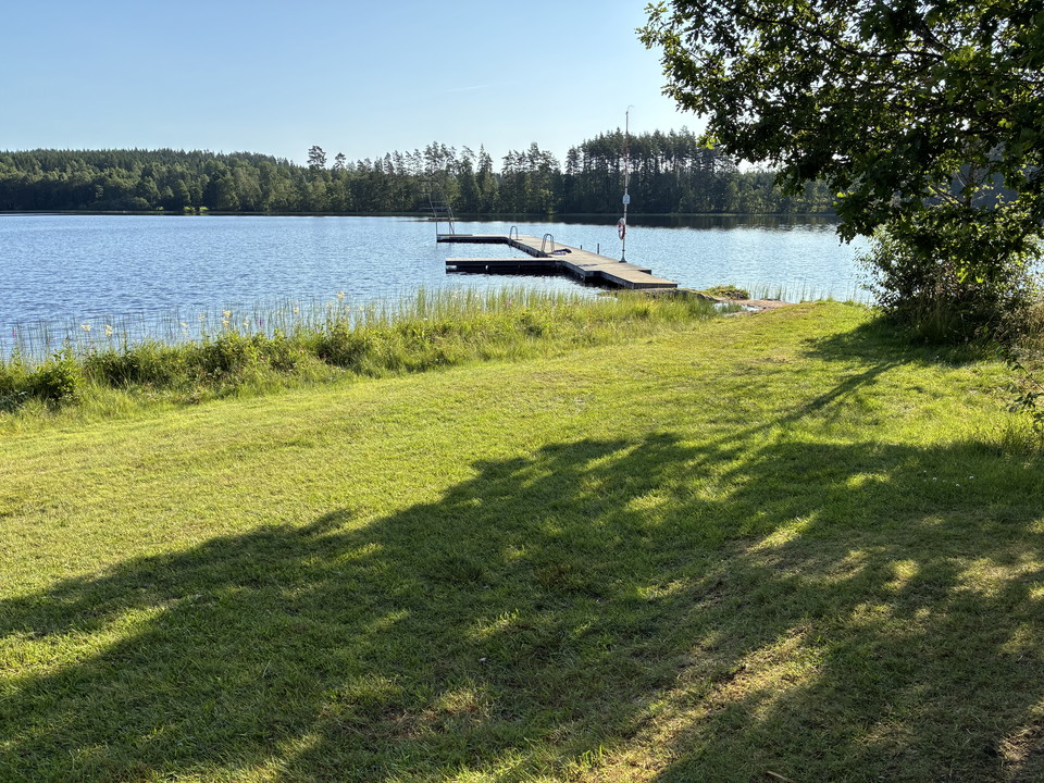 At Slättsjön in Vrigstad there are bathing jetties, diving tower, changing building, cold water shower, dry toilet, grass areas and beach volleyball net.