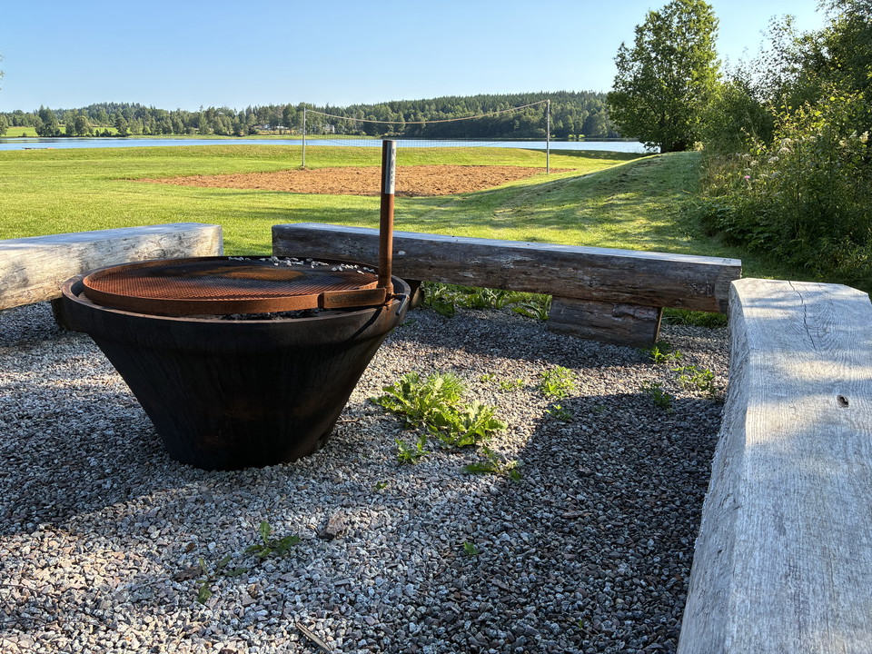 Bathing jetty and diving tower near the campsite, with its own changing cabin, dry toilet.