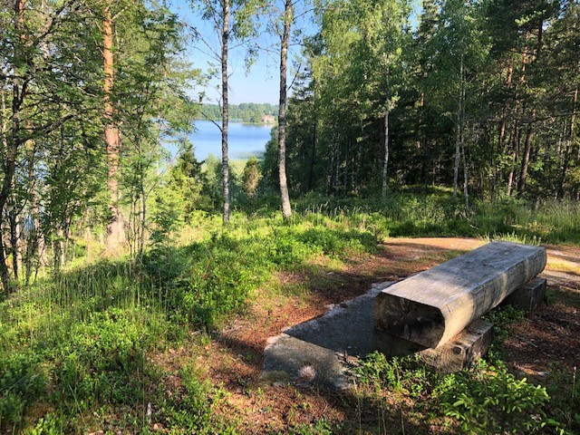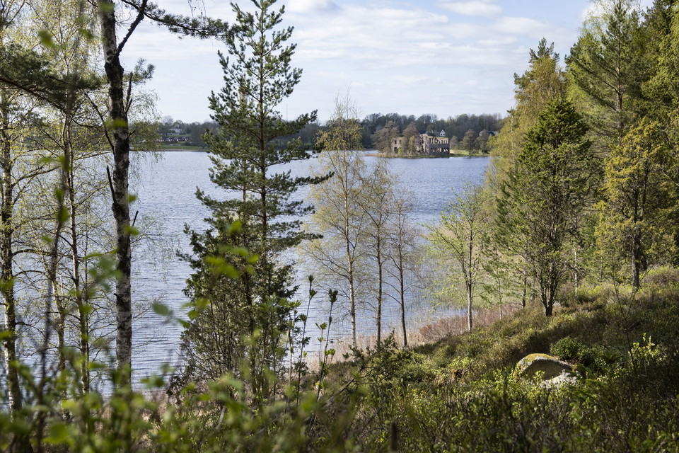 På en liten höjd, en bit från leden runt sjön, ligger denna vackra utsiktsplats med bänk. Slå dig ner och se ut över sjön och slottsruinen på andra sidan.