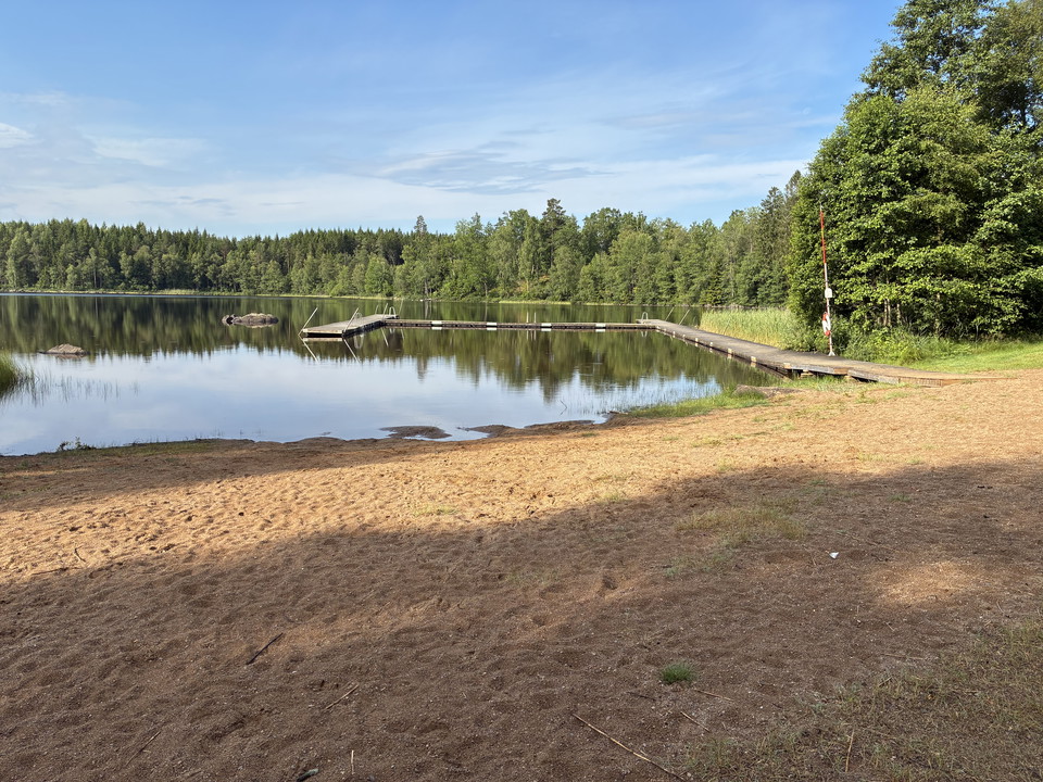 At Norrsjön outside Stockaryd there are bathing jetties, a changing building, a dry toilet, a barbecue area and grass areas.