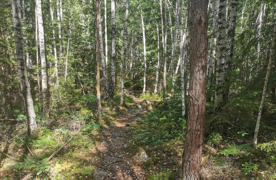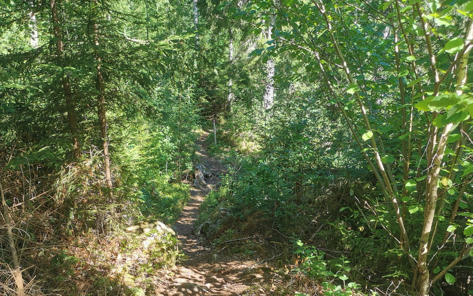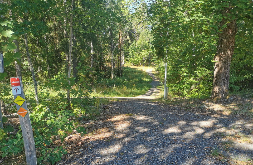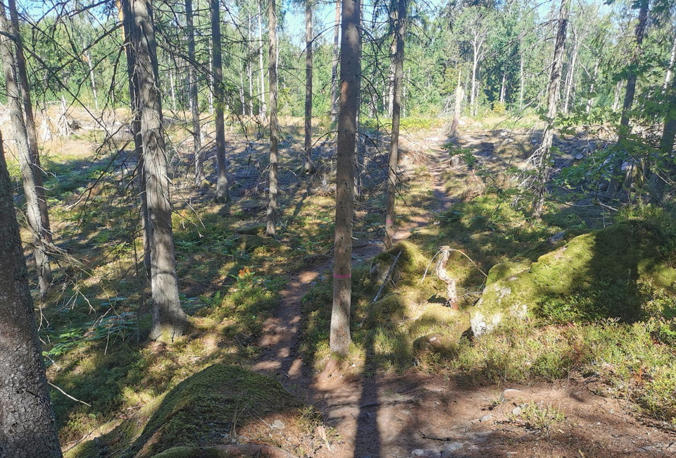 Bäcken, Röd 5 km This is a real gem for those who have been cycling on trails for a while and who thirst for a little more challenging trails. The trail consists almost exclusively of natural paths that are linked together into a whole that not only offers wonderful and challenging cycling, but also wonderful environments in some of Svartbäcksmåla's most remote corners. Feel free to take it a little extra carefully the first time you are on the trail and rather step off and inspect difficult passages before cycling them, it is much smarter than taking chances.