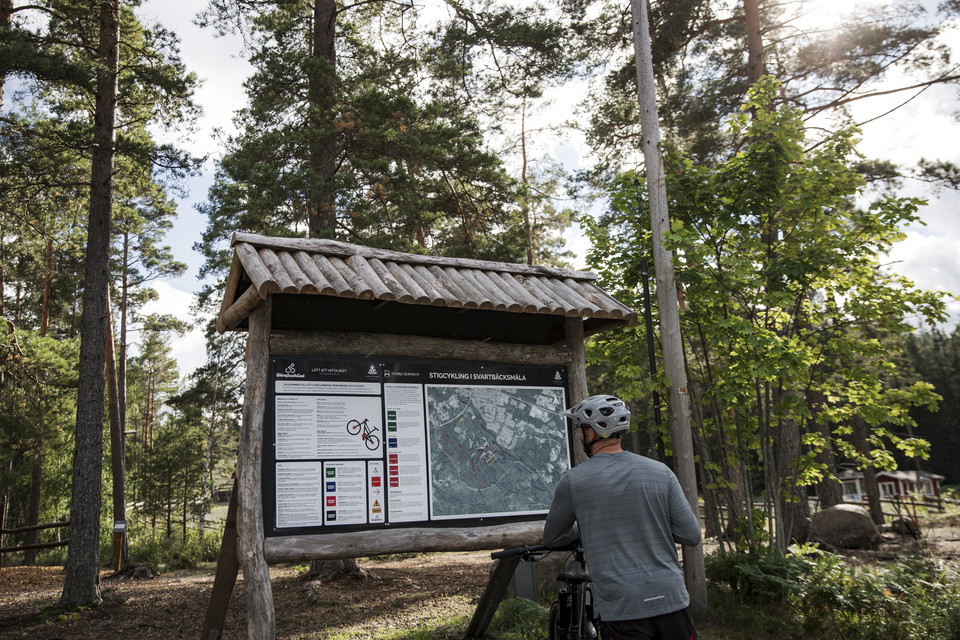 Backvarvet, Red 2 km Loop that offers climbing and downhill. Backvarvet takes you several times up the slalom slope and through two forest sections that are a bit technically challenging at times. There are steep slopes and areas with rocks and roots. Feel free to take a calm first lap, to then be able to take advantage of the trail's opportunities for higher speeds where it goes on the next lap.