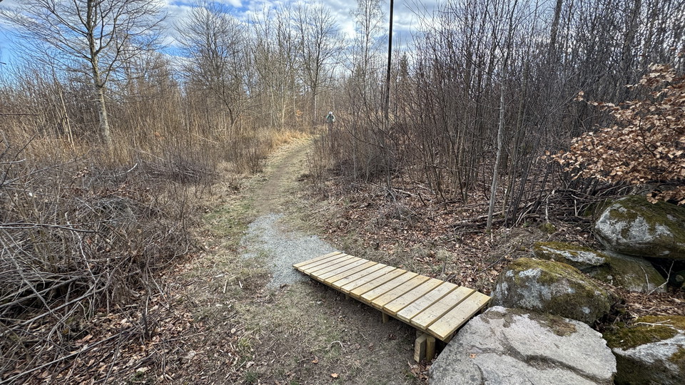 Boar Ring has technical obstacles/ramps with serpentine path, jumps, rock chests, roll-overs with shortcuts. There is a ramp over a stone wall with a drop if you are brave, otherwise you can roll down it. Passages that can be perceived as difficult have shortcuts and obstacles are marked with signs. Here you can find the segment "Gräshoppan" on Strava. There is a stone bridge and decking along the path. The path comes out on the road, near Dalabäcken's bicycle bridge and returns to the bicycle meeting point via Sträva's gravel road