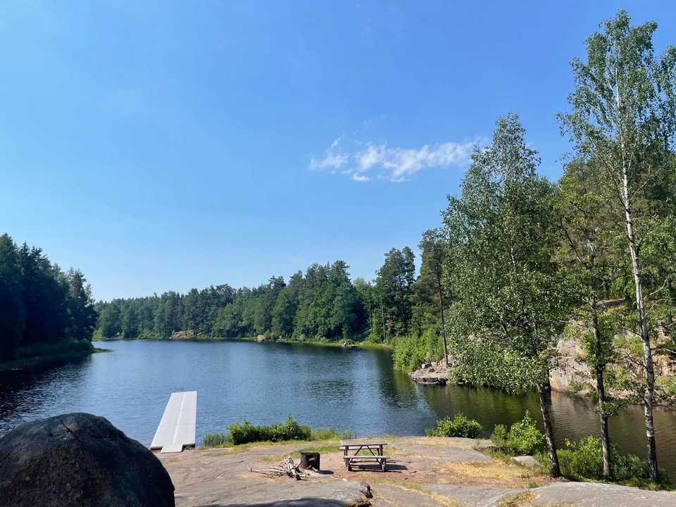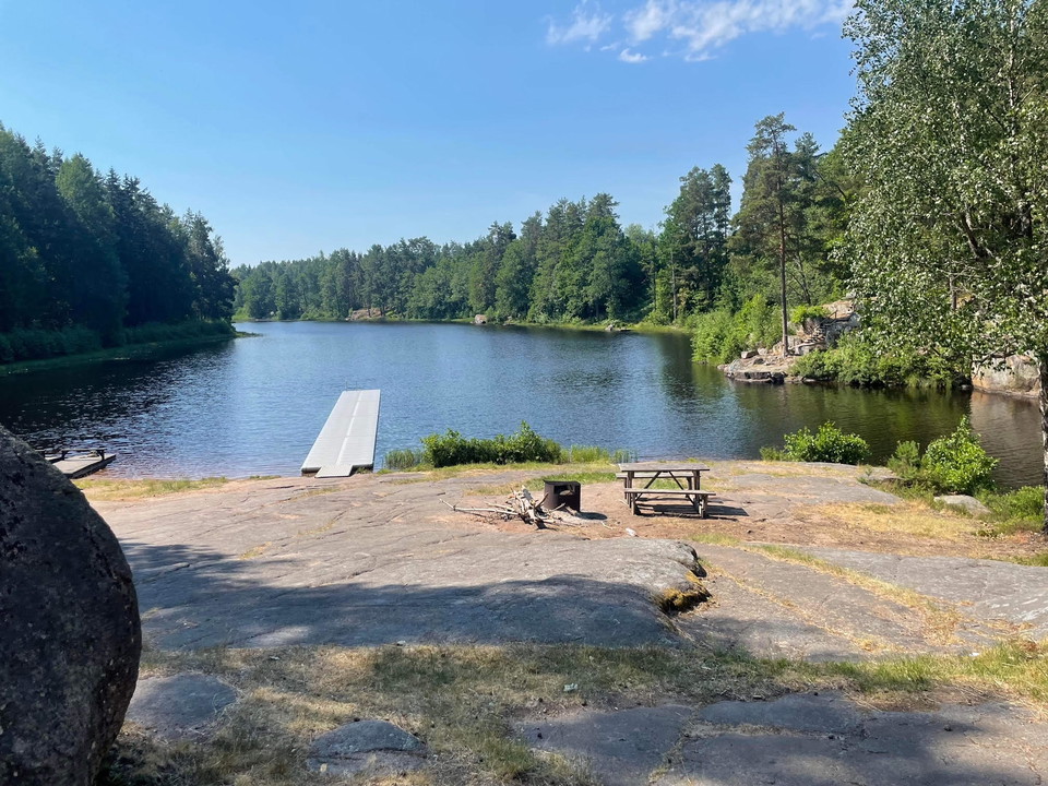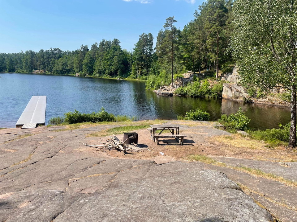 In Gullringen you will find this beautifully natural bathing place that goes from a boulder down into the pond. The jetties extend 24 meters out into this deep and clean lake where rainbow trout sometimes appear at the surface.