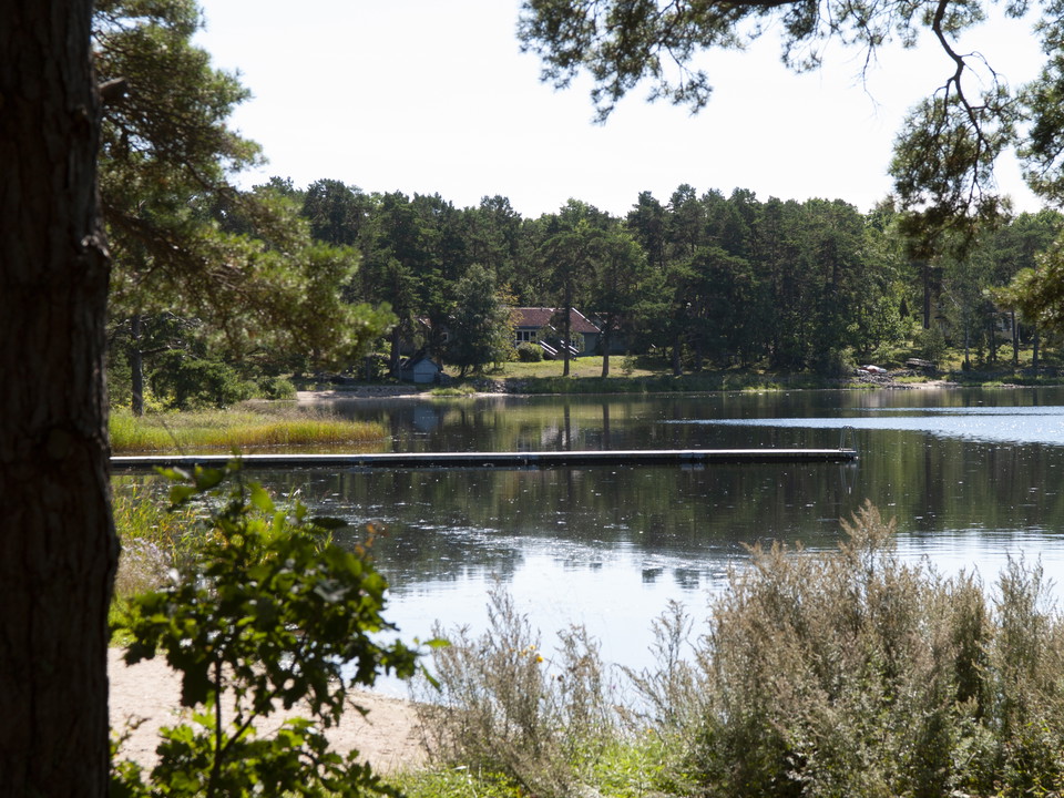 Child-friendly bathing area in a protected environment with a small beach and jetty.